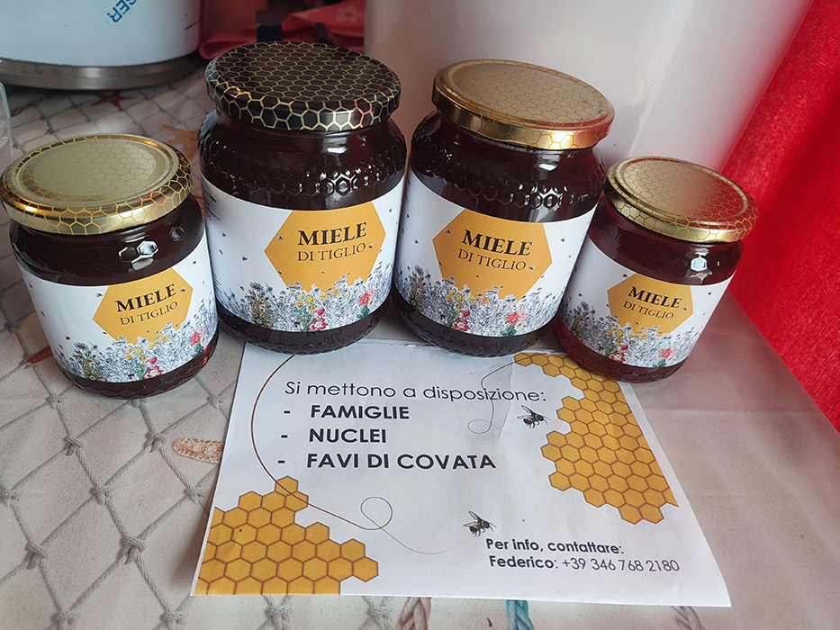 Produce miele millefiori, miele di tiglio e miele in favo.